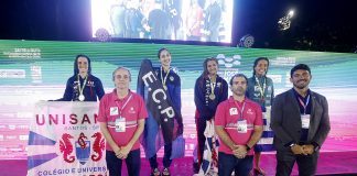 Nadadora e treinadora da Natação Infantil da Unisanta representam o Brasil...