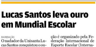 Medalha de ouro em Mundial Escolar conquistada pelo nadador Lucas Santos,...
