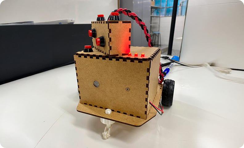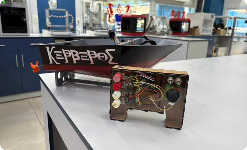 Barco telecontrolado desenvolvido a partir da integração de conhecimentos adquiridos ao longo do curso de Engenharia. O projeto aplica conceitos multidisciplinares e inclui um sistema de bombeamento de água para interação de combate durante a competição.