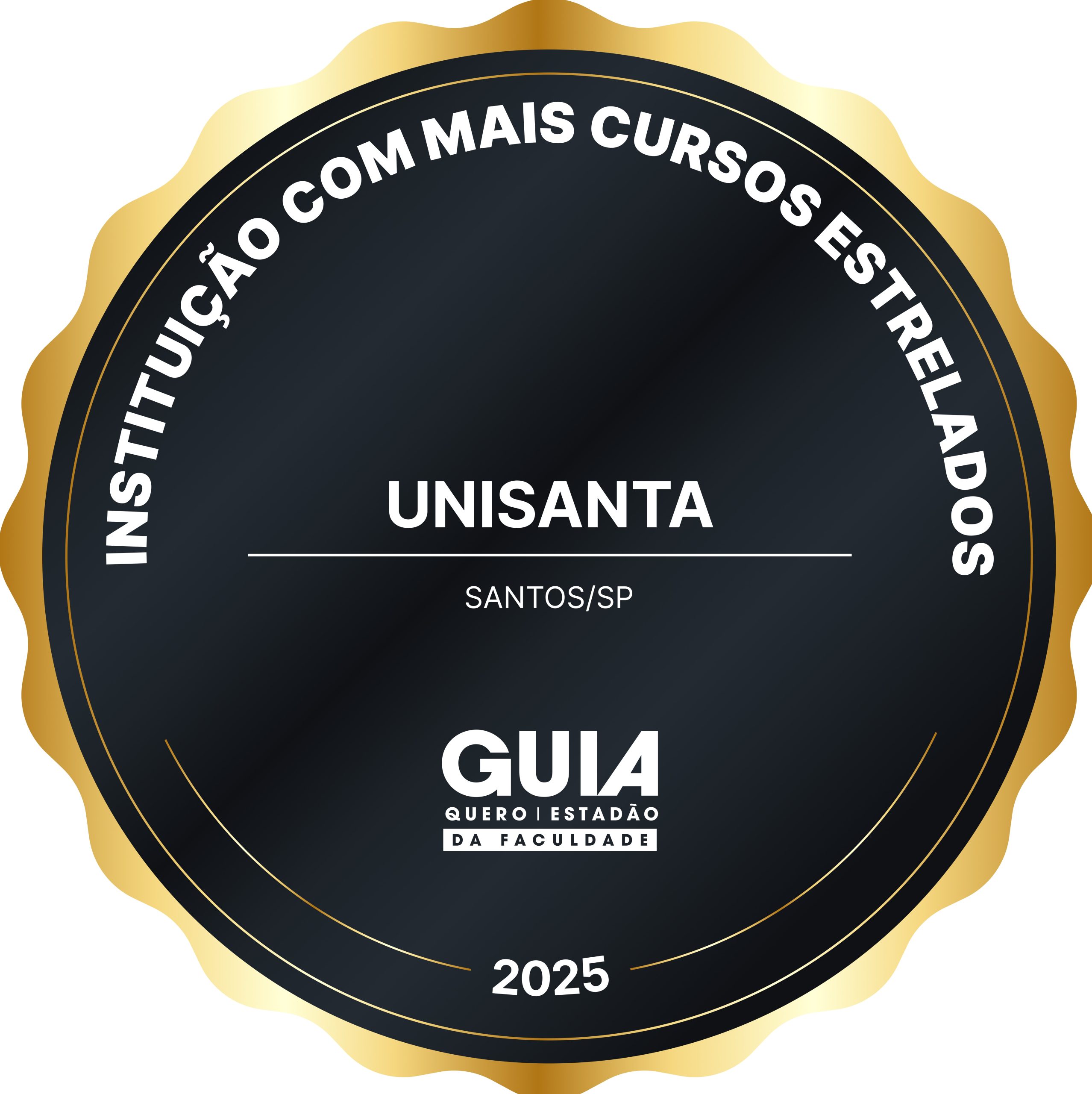 Além das distinções atribuídas aos cursos, a Unisanta recebeu também o selo de destaque como Instituição com mais cursos estrelados de Santos, com 173 estrelas no Guia da Faculdade, que avalia tanto os cursos presenciais quanto os a distância.