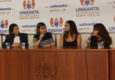 A mediação foi realizada pela professora de Jornalismo Raquel Alves, que também participa do encontro como representante do Chega! – Observatório Unisanta de Violência contra a Mulher.