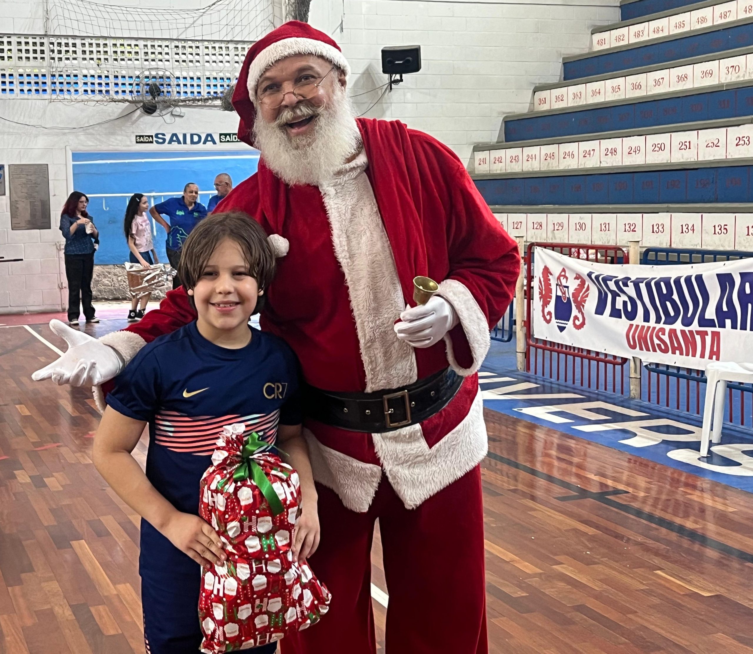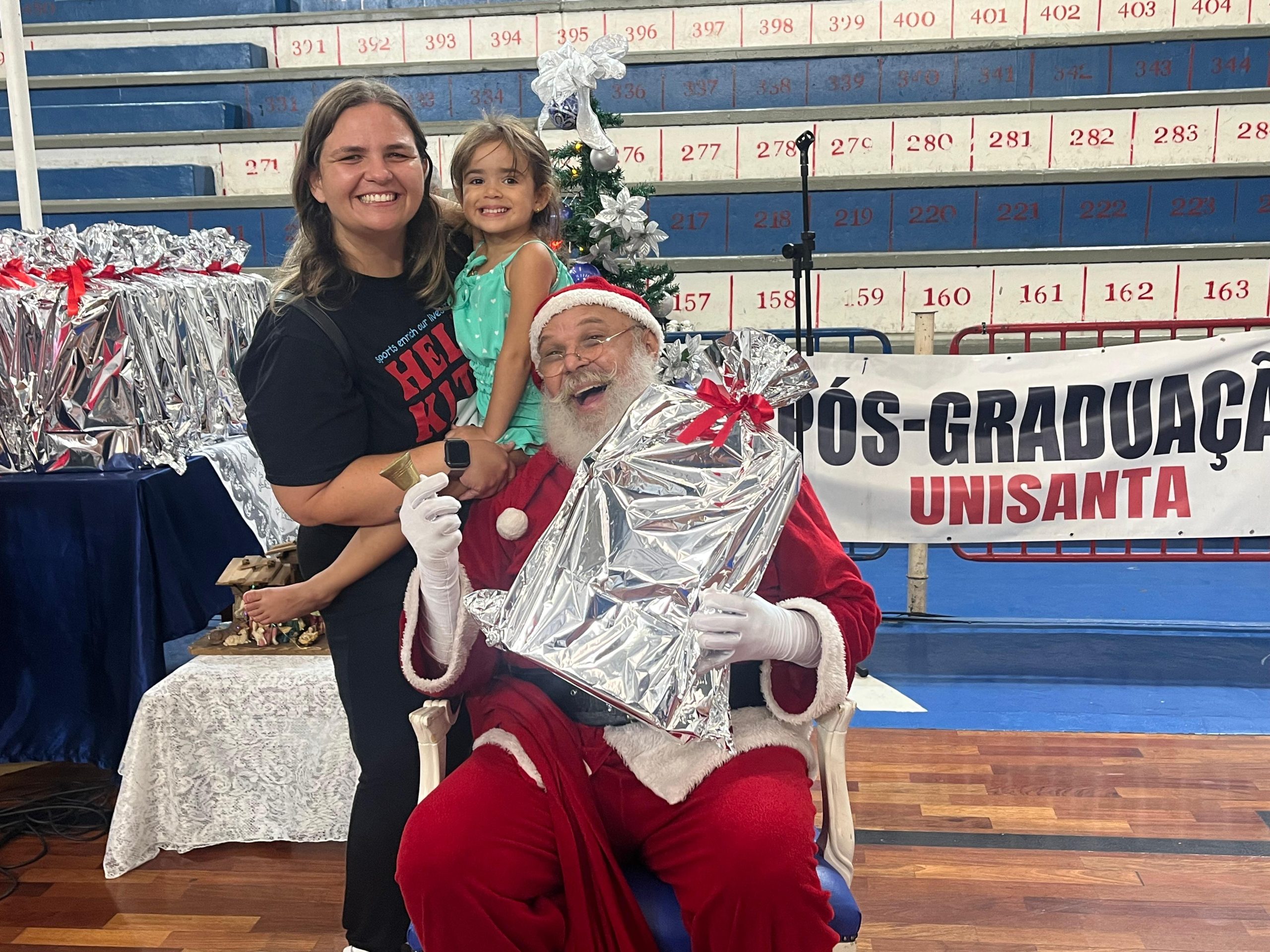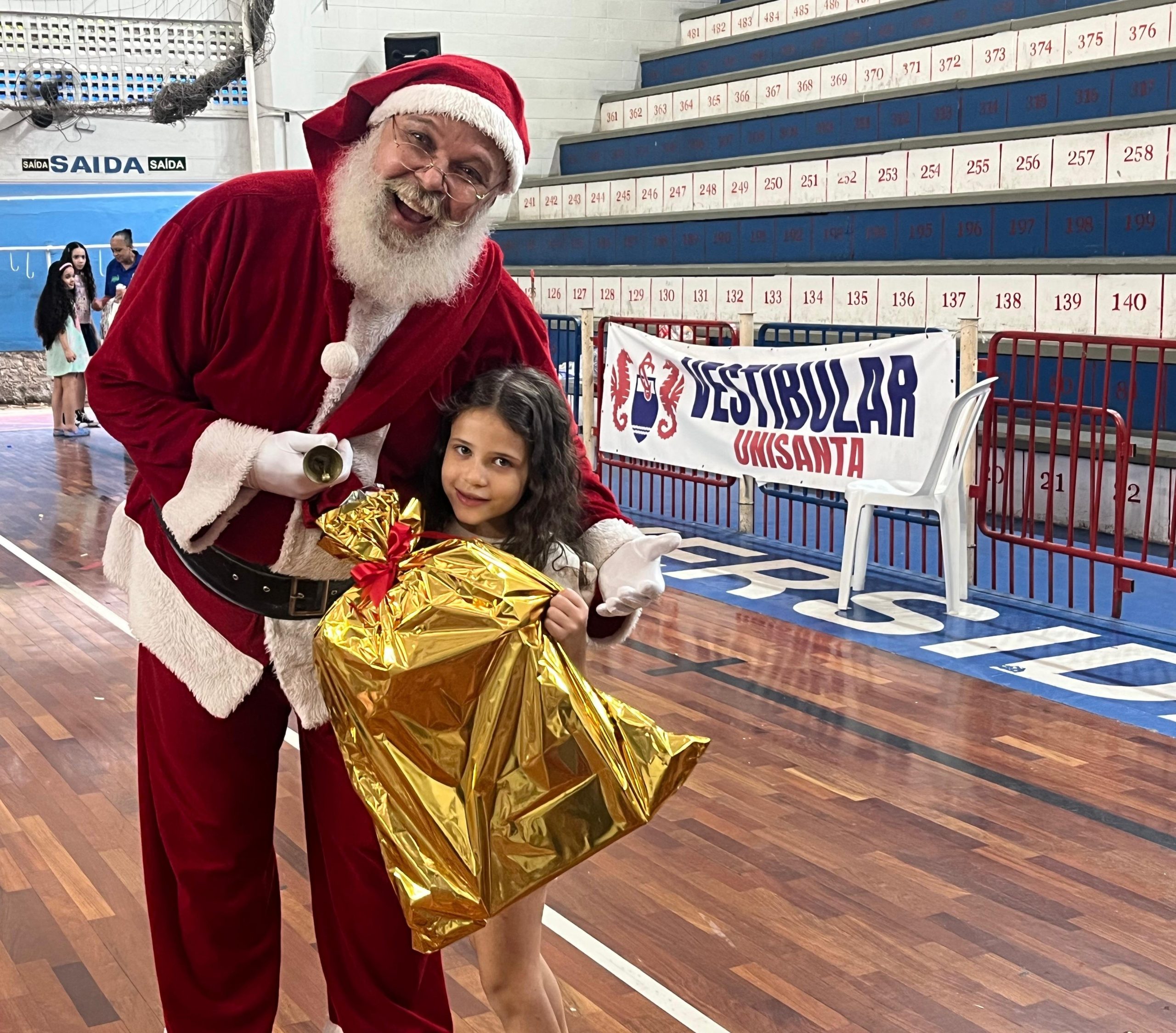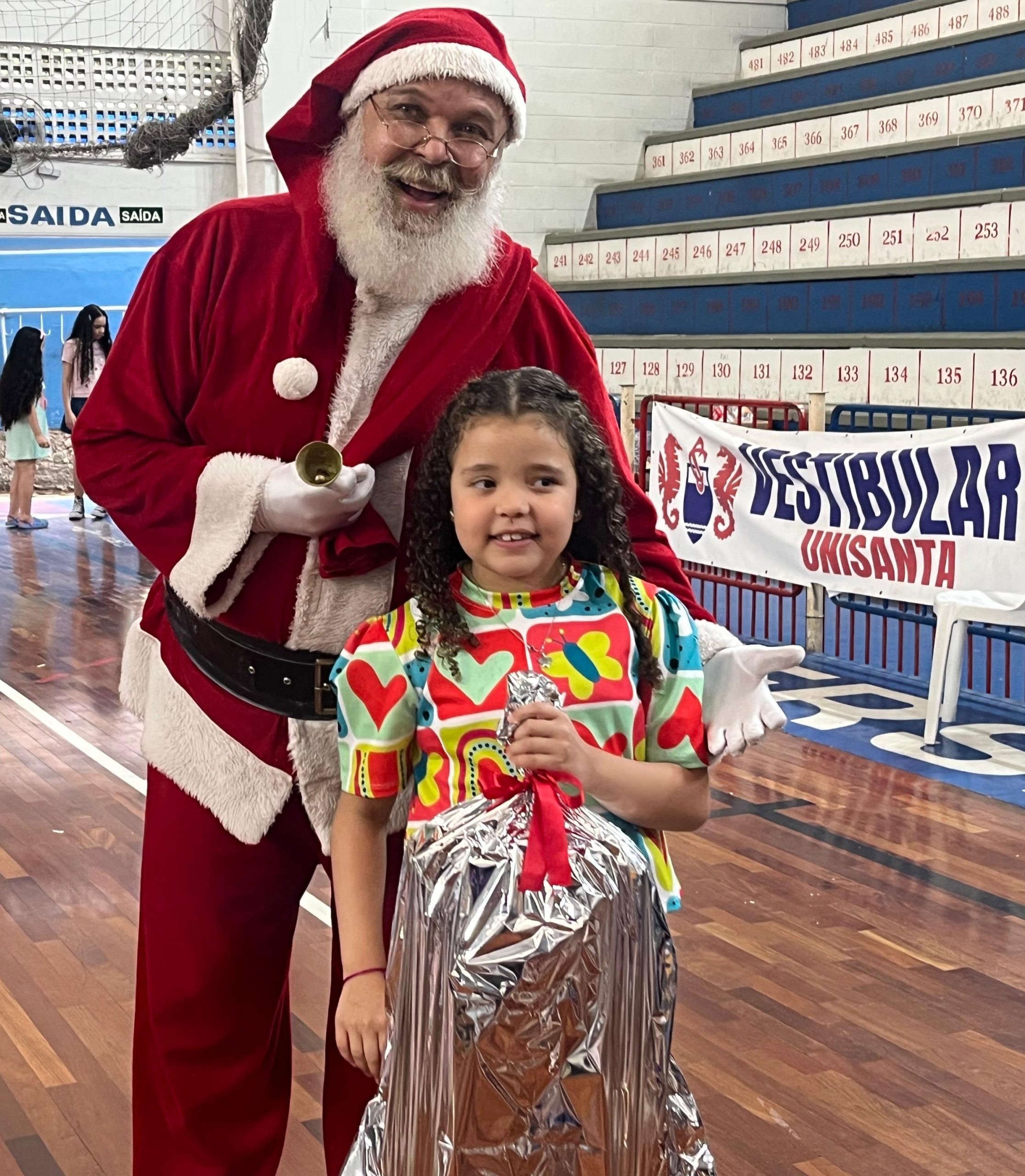 O evento, que aconteceu no Ginásio Poliesportivo da Universidade Santa Cecília (Unisanta) ofereceu às crianças tudo o que torna o Natal especial: presentes, brinquedos, barraquinhas recheadas de guloseimas e a presença aguardada do Papai Noel.