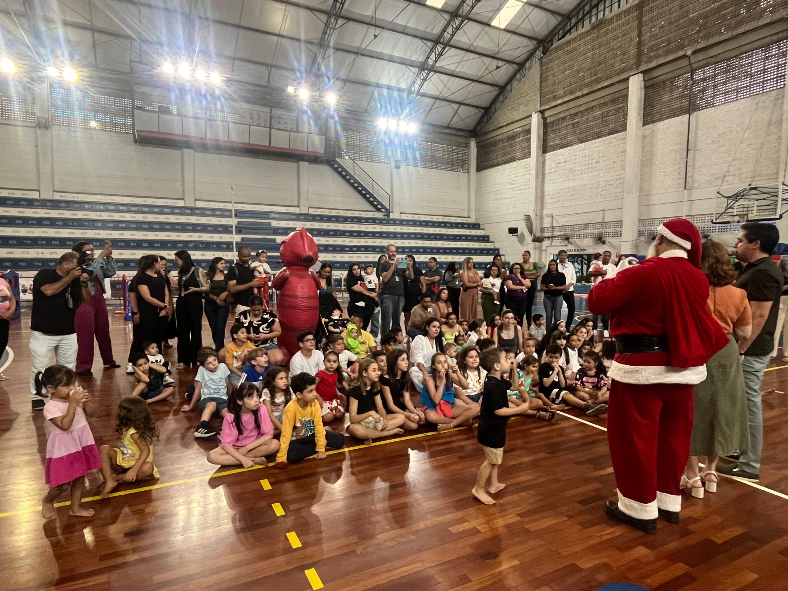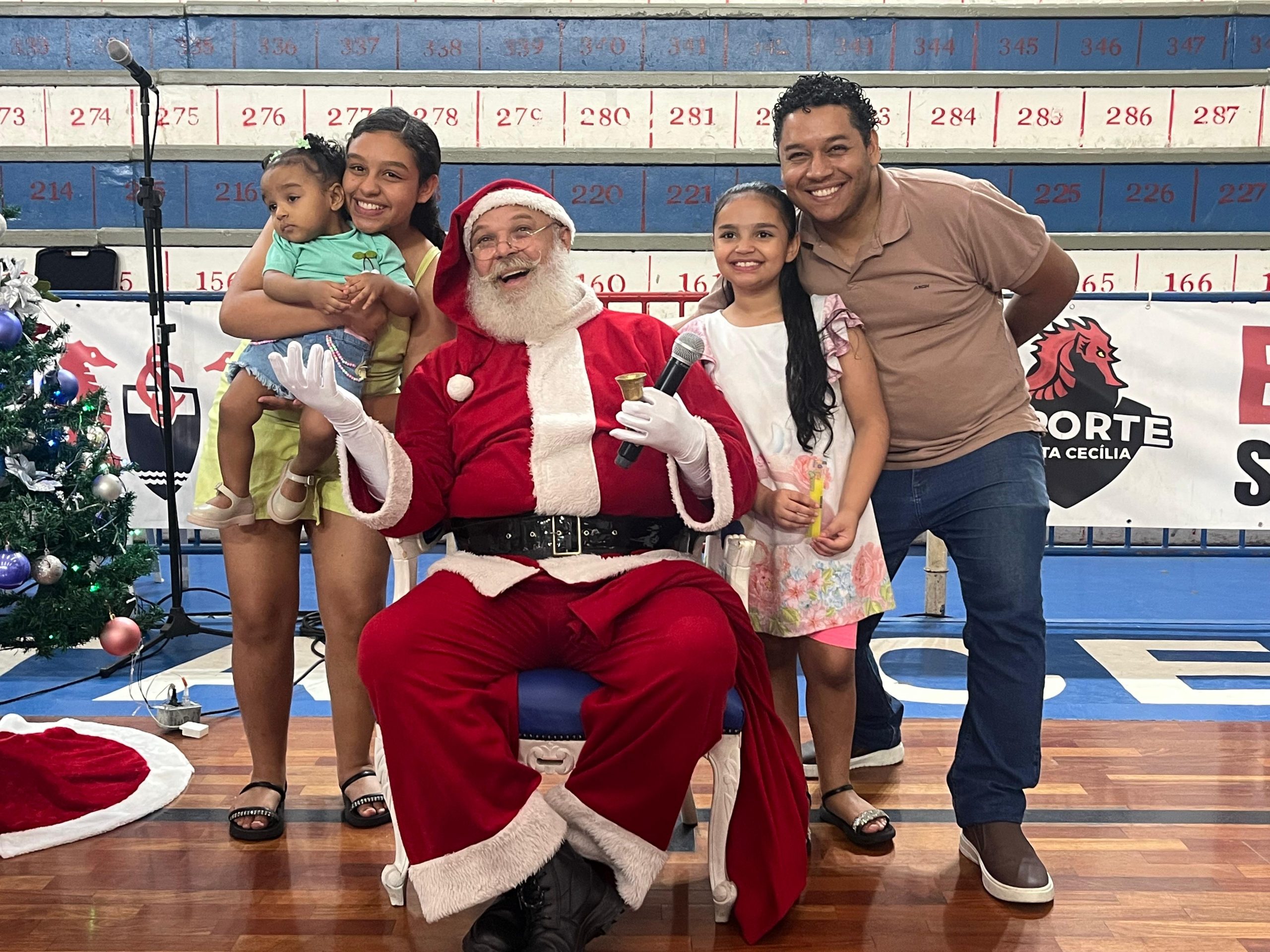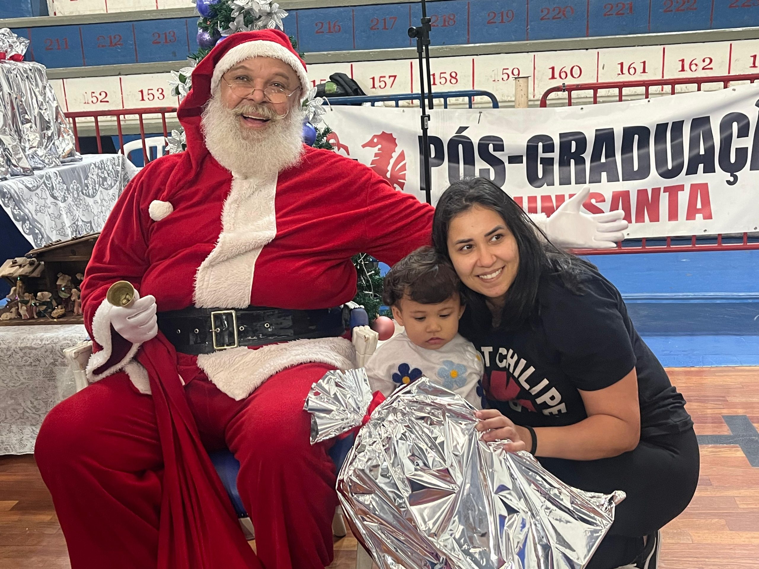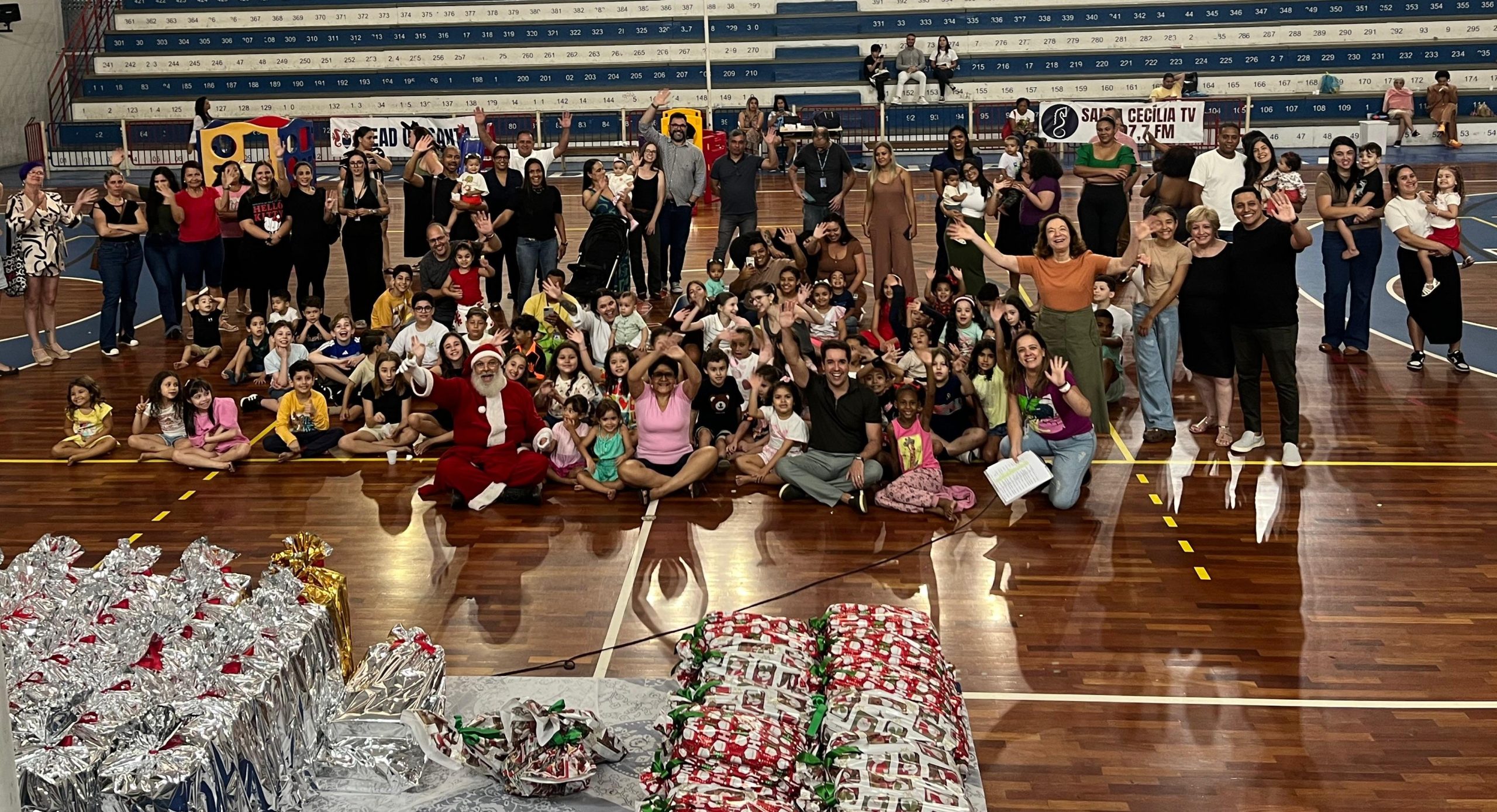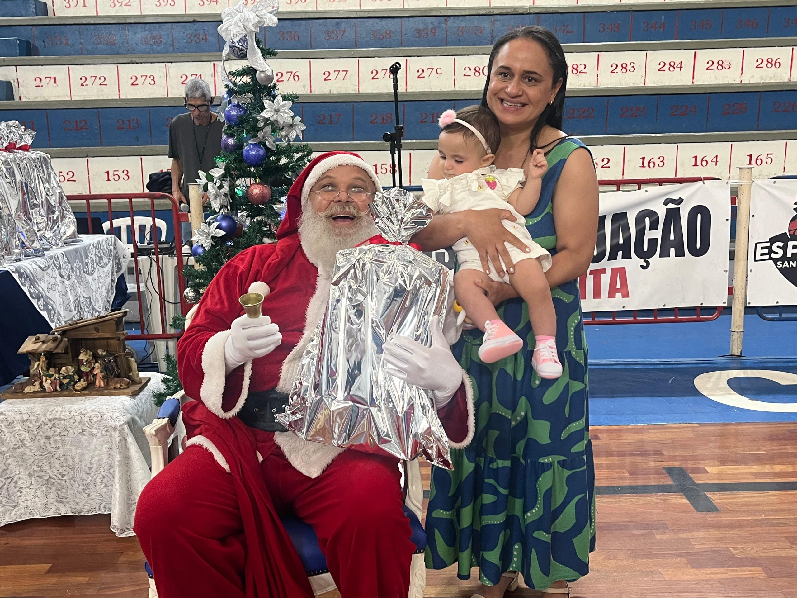 O evento, que aconteceu no Ginásio Poliesportivo da Universidade Santa Cecília (Unisanta) ofereceu às crianças tudo o que torna o Natal especial: presentes, brinquedos, barraquinhas recheadas de guloseimas e a presença aguardada do Papai Noel.