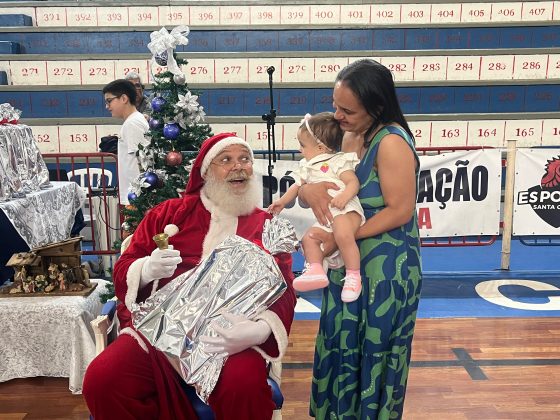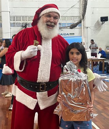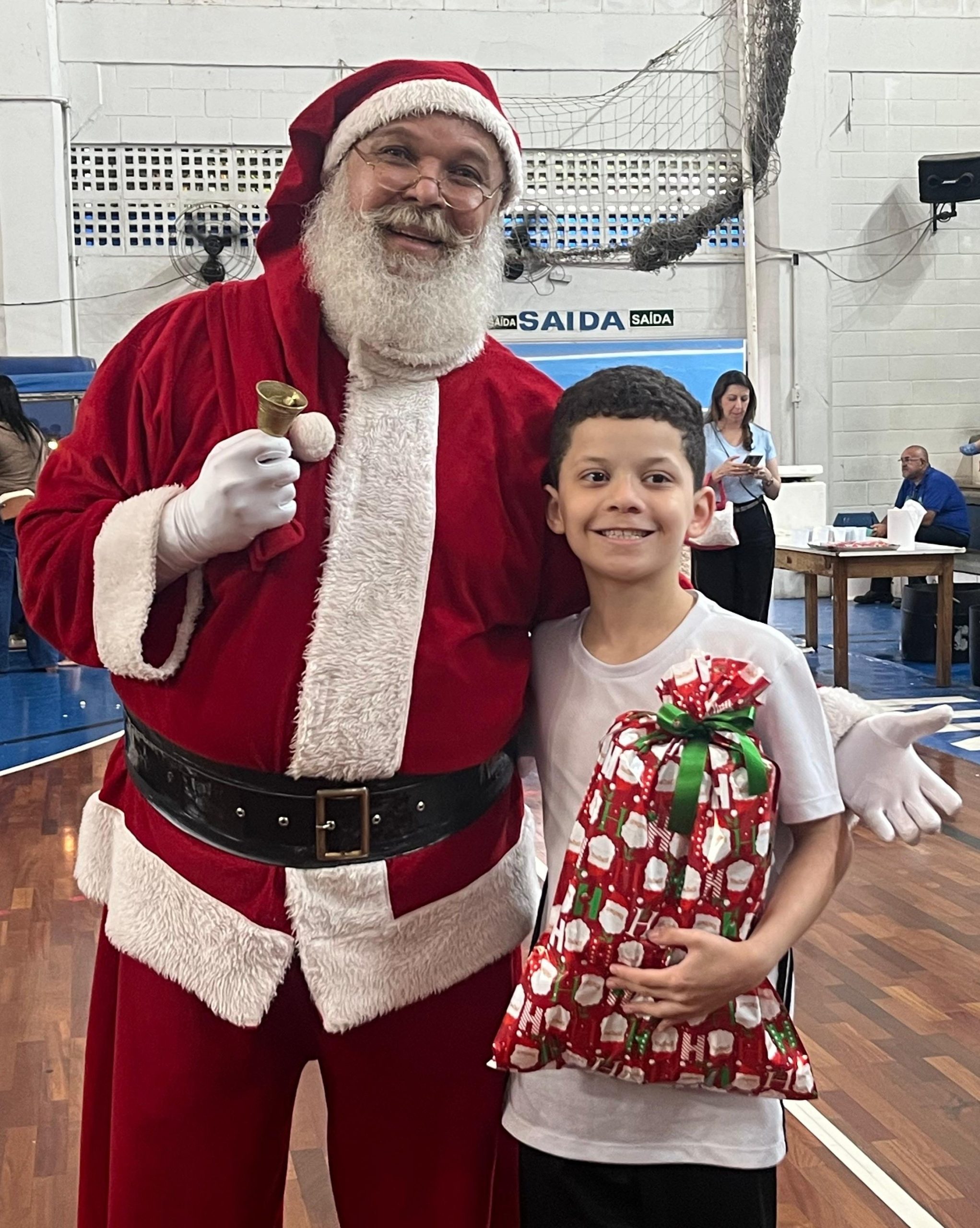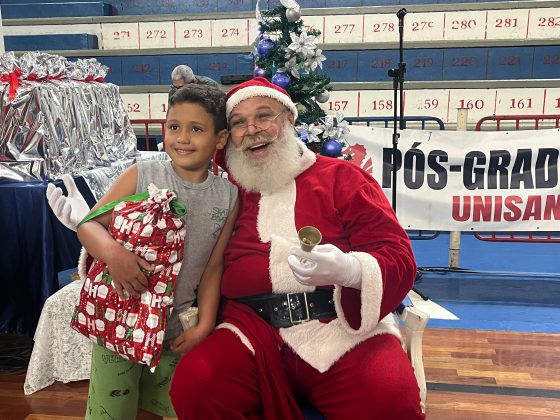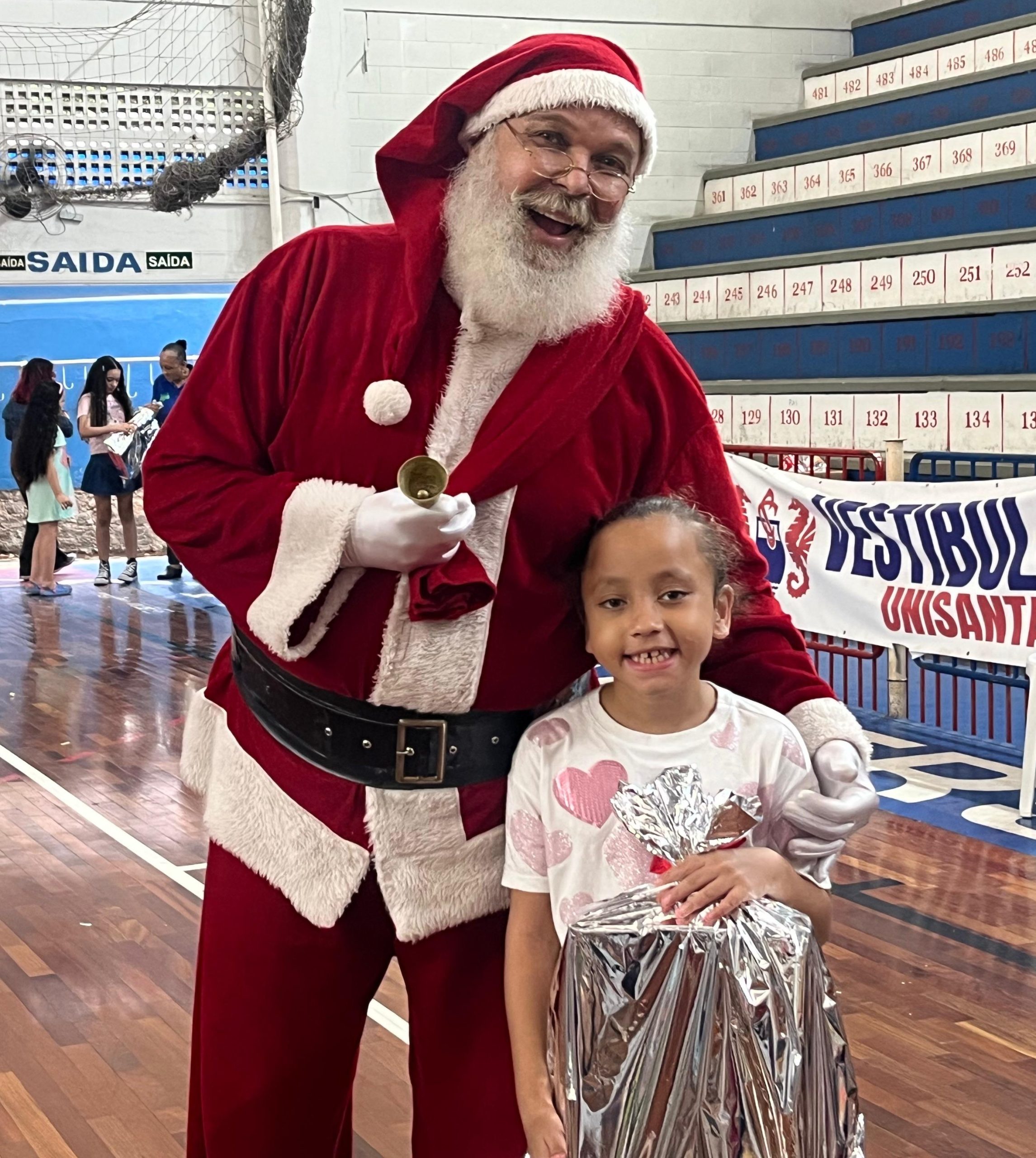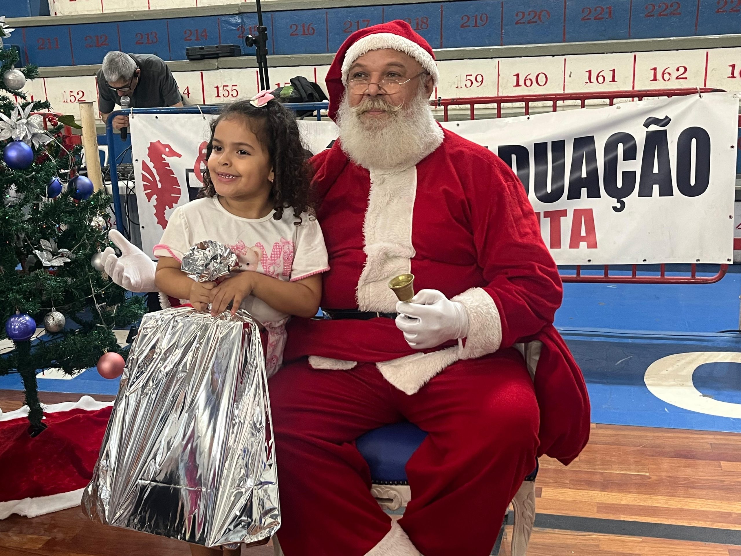O evento, que aconteceu no Ginásio Poliesportivo da Universidade Santa Cecília (Unisanta) ofereceu às crianças tudo o que torna o Natal especial: presentes, brinquedos, barraquinhas recheadas de guloseimas e a presença aguardada do Papai Noel.