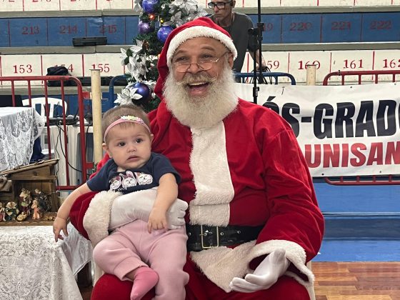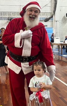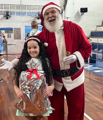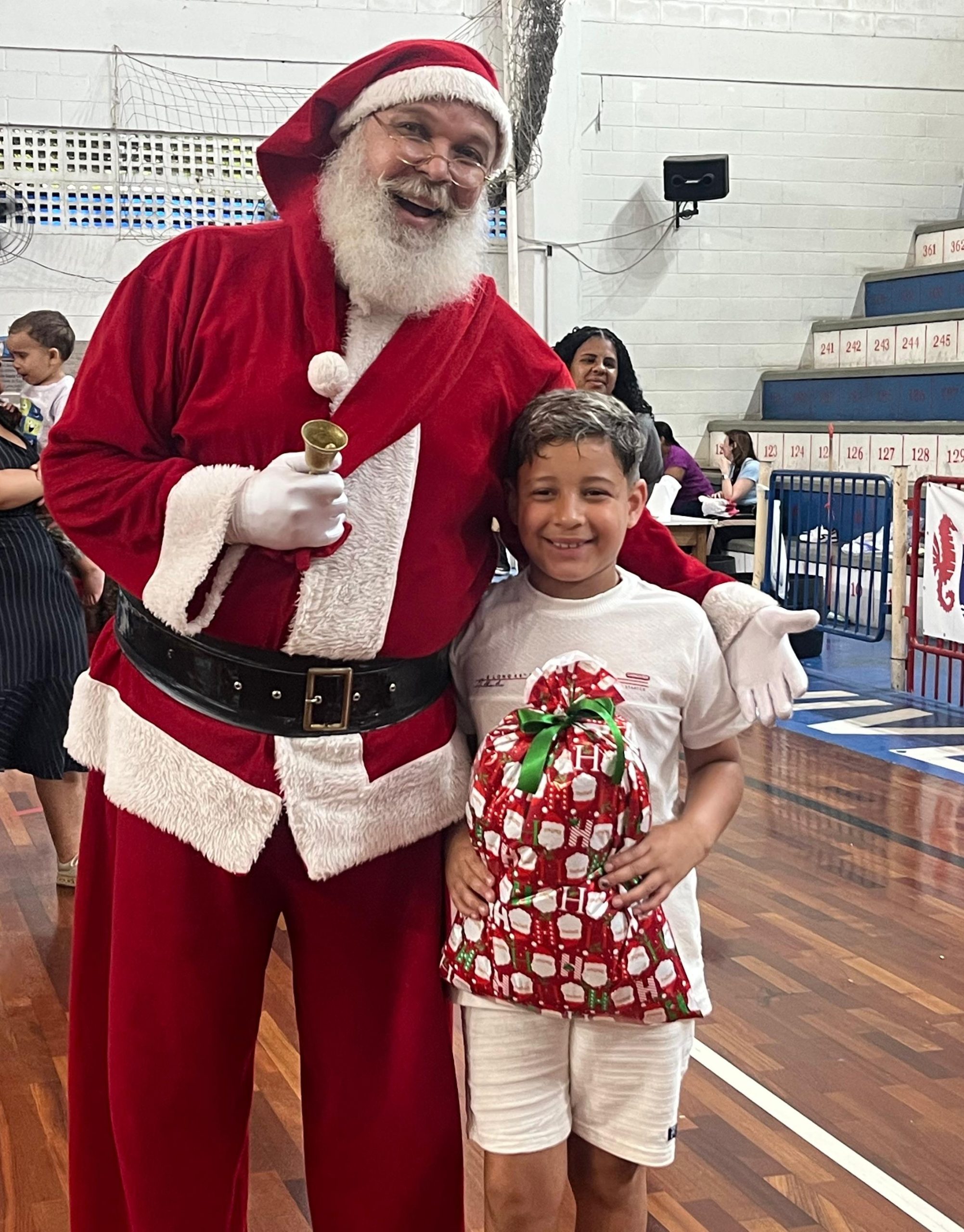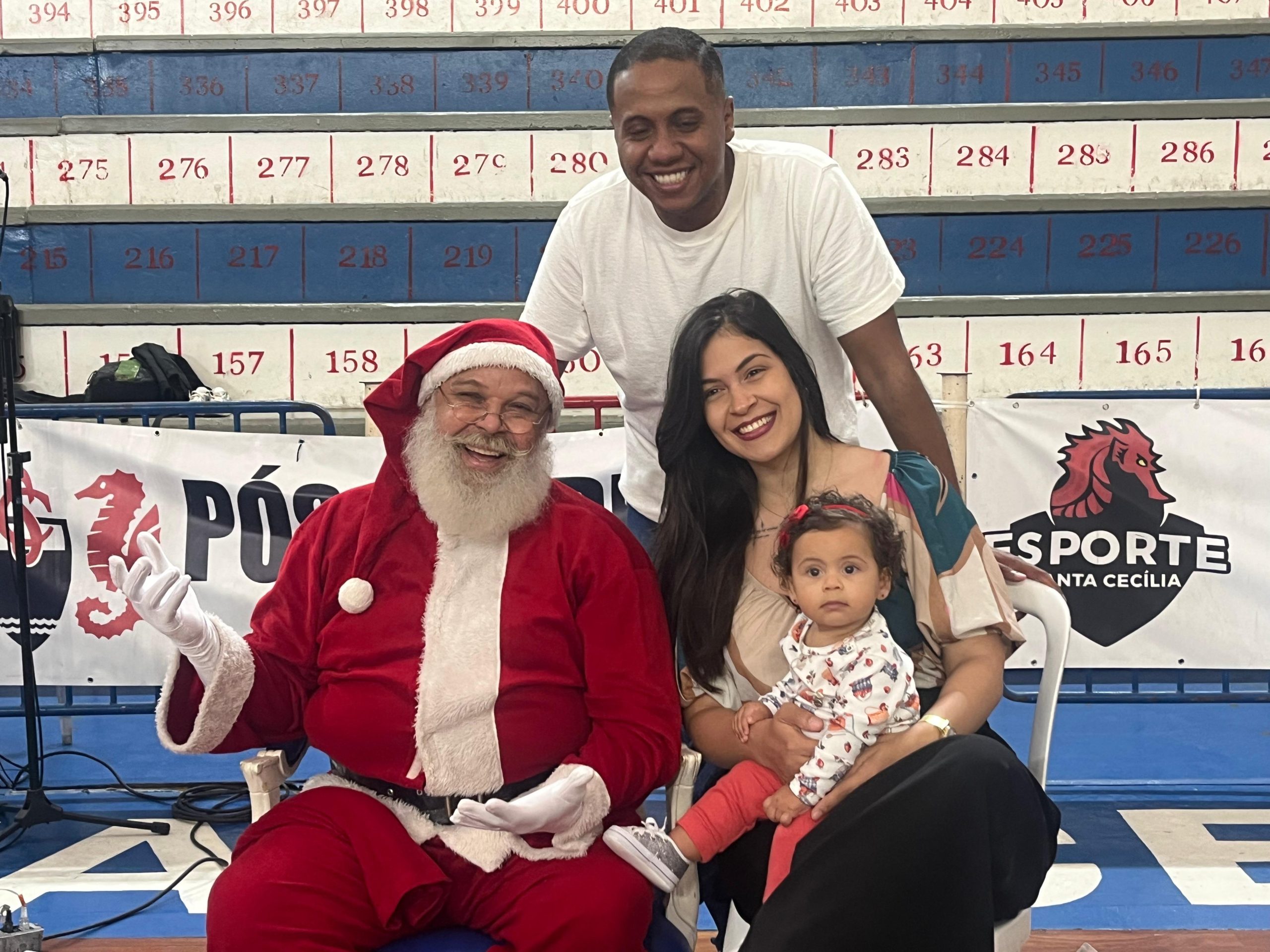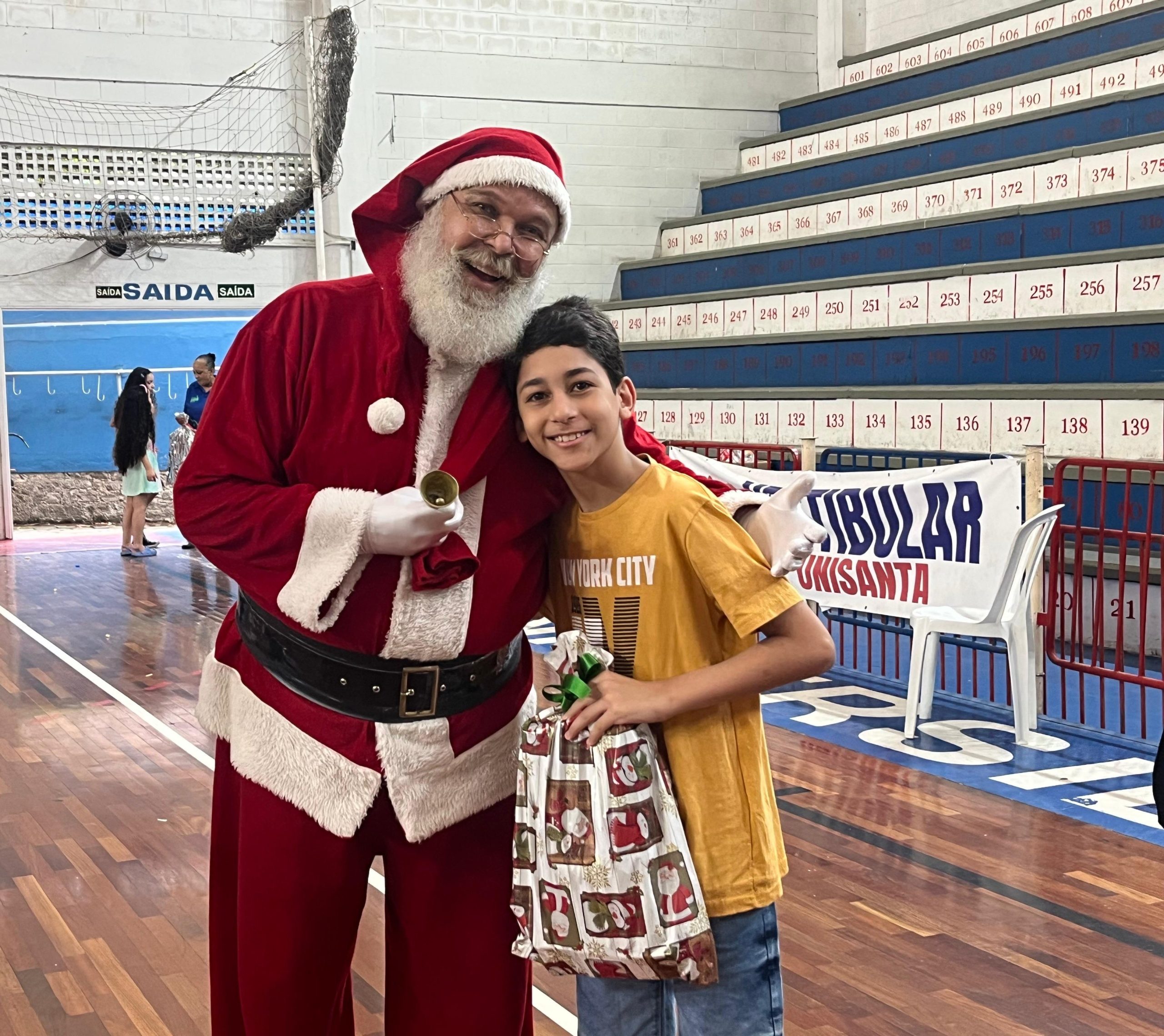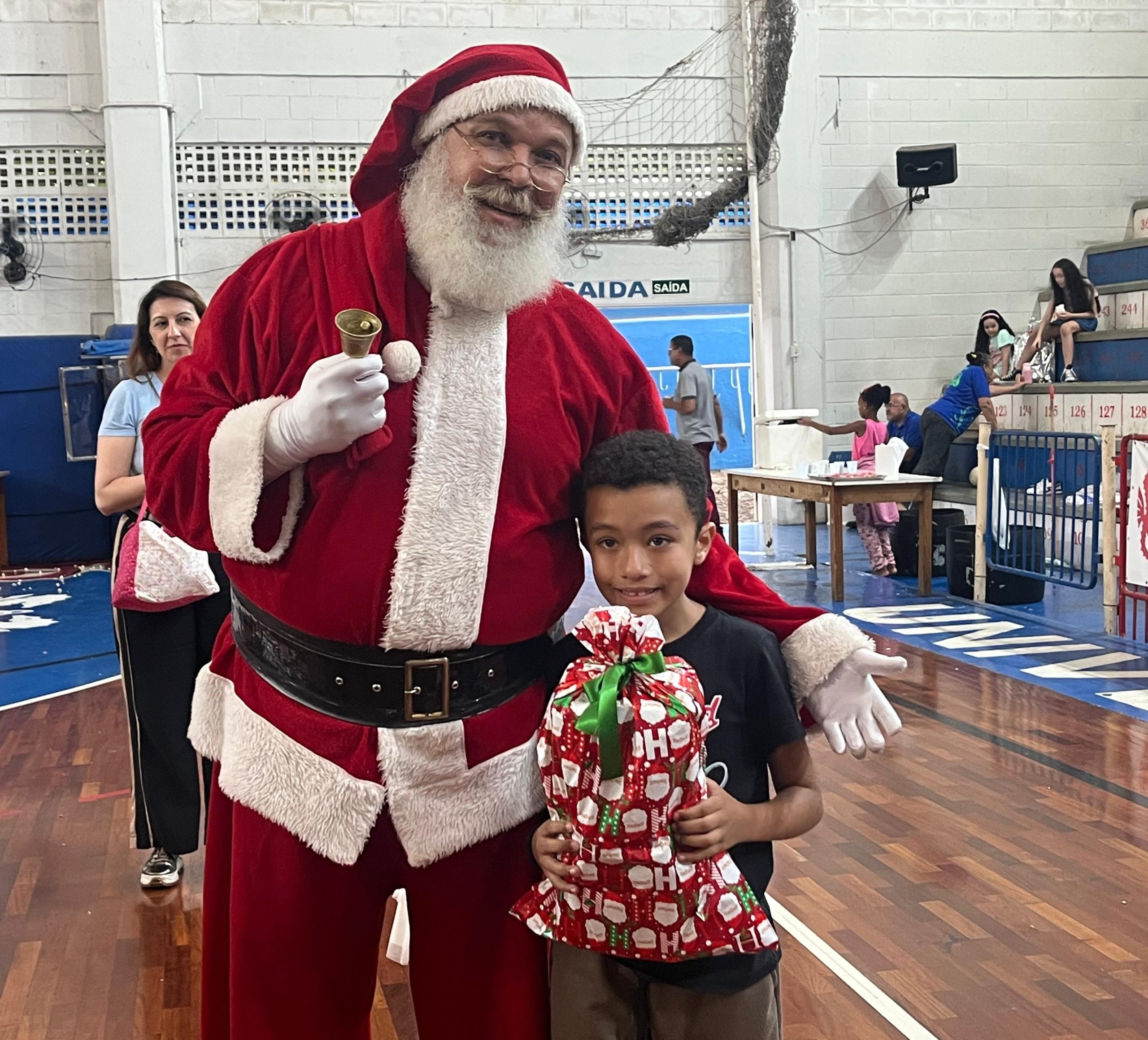O evento, que aconteceu no Ginásio Poliesportivo da Universidade Santa Cecília (Unisanta) ofereceu às crianças tudo o que torna o Natal especial: presentes, brinquedos, barraquinhas recheadas de guloseimas e a presença aguardada do Papai Noel.