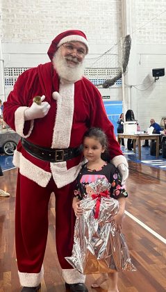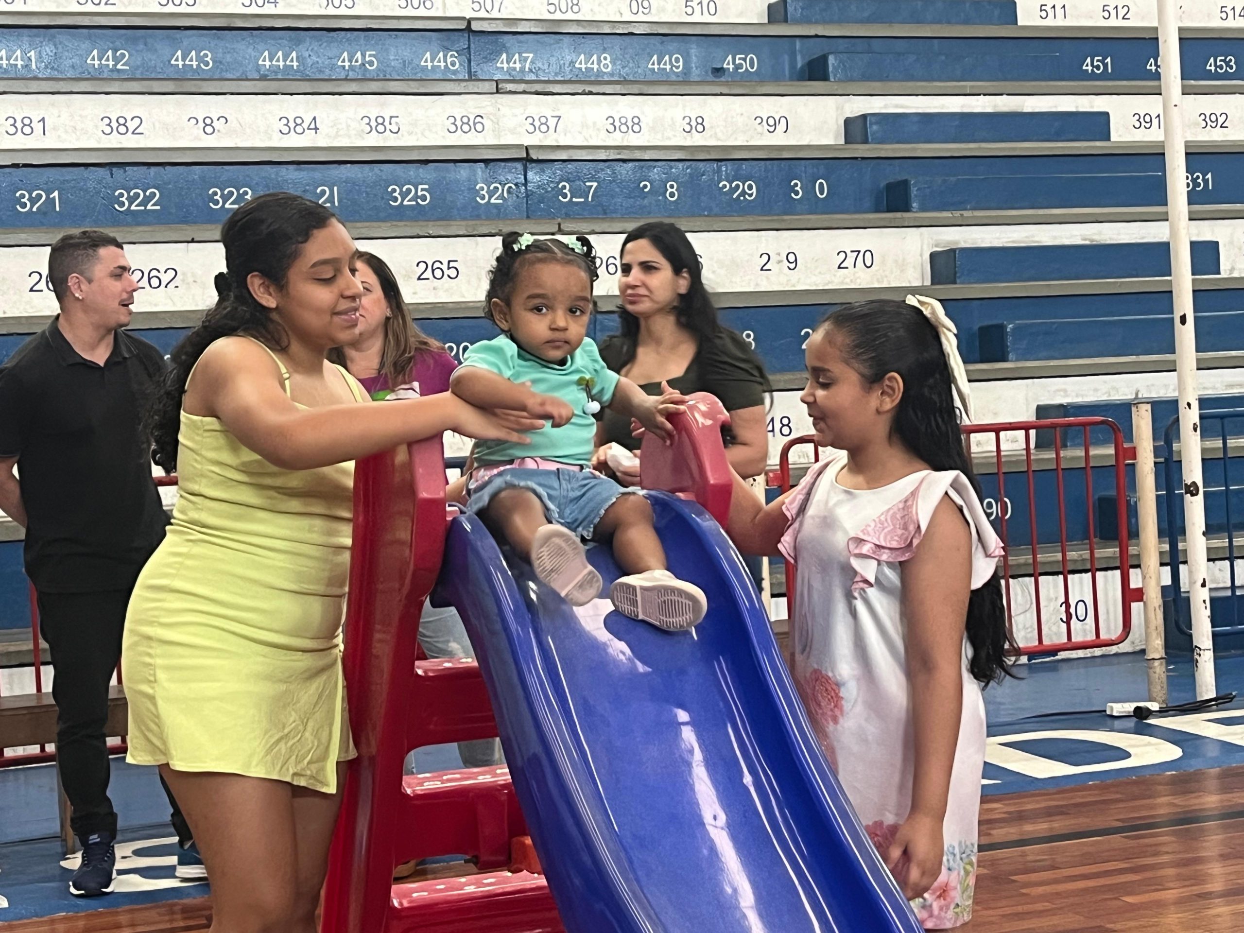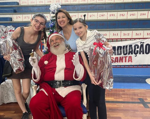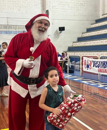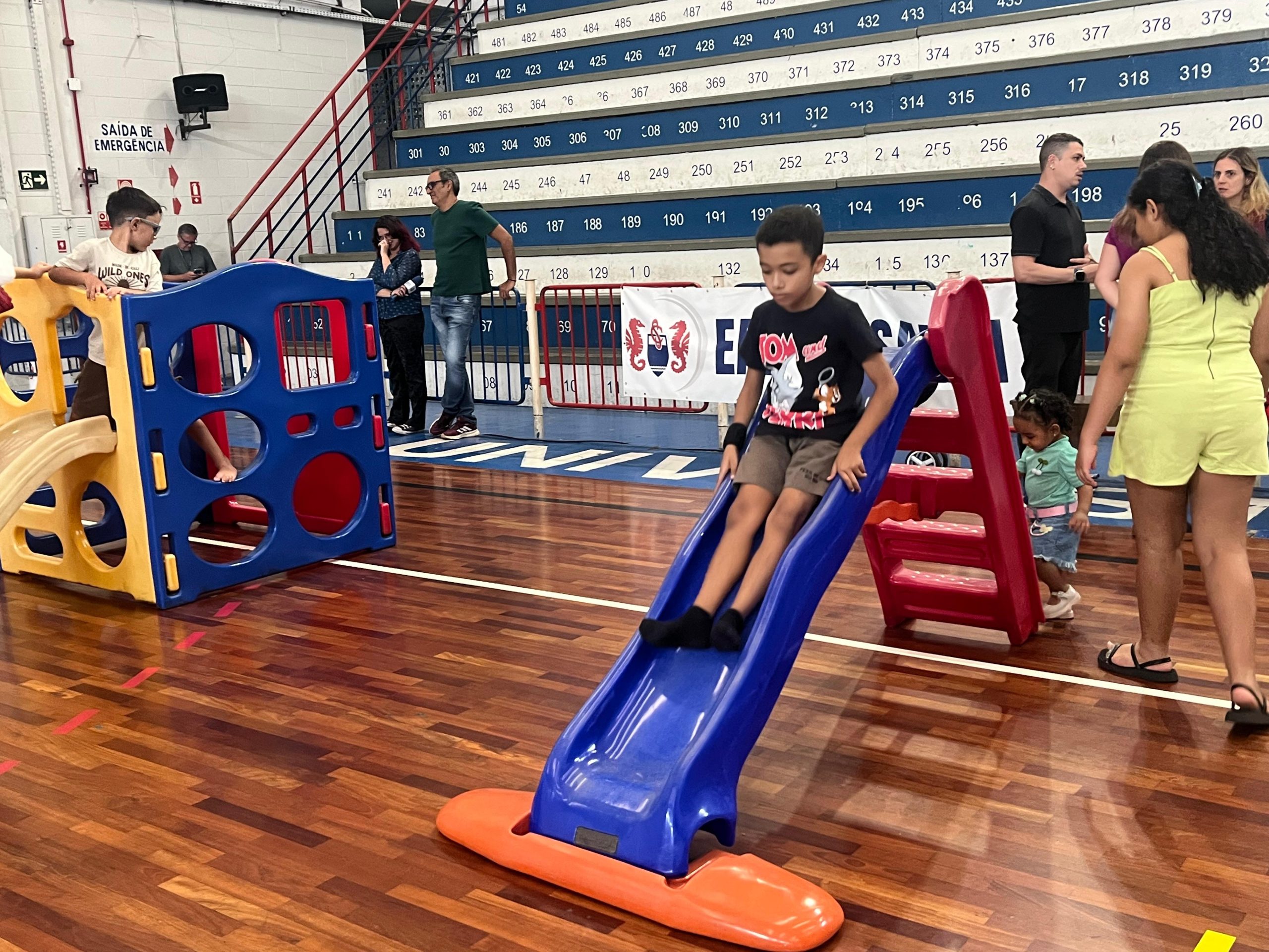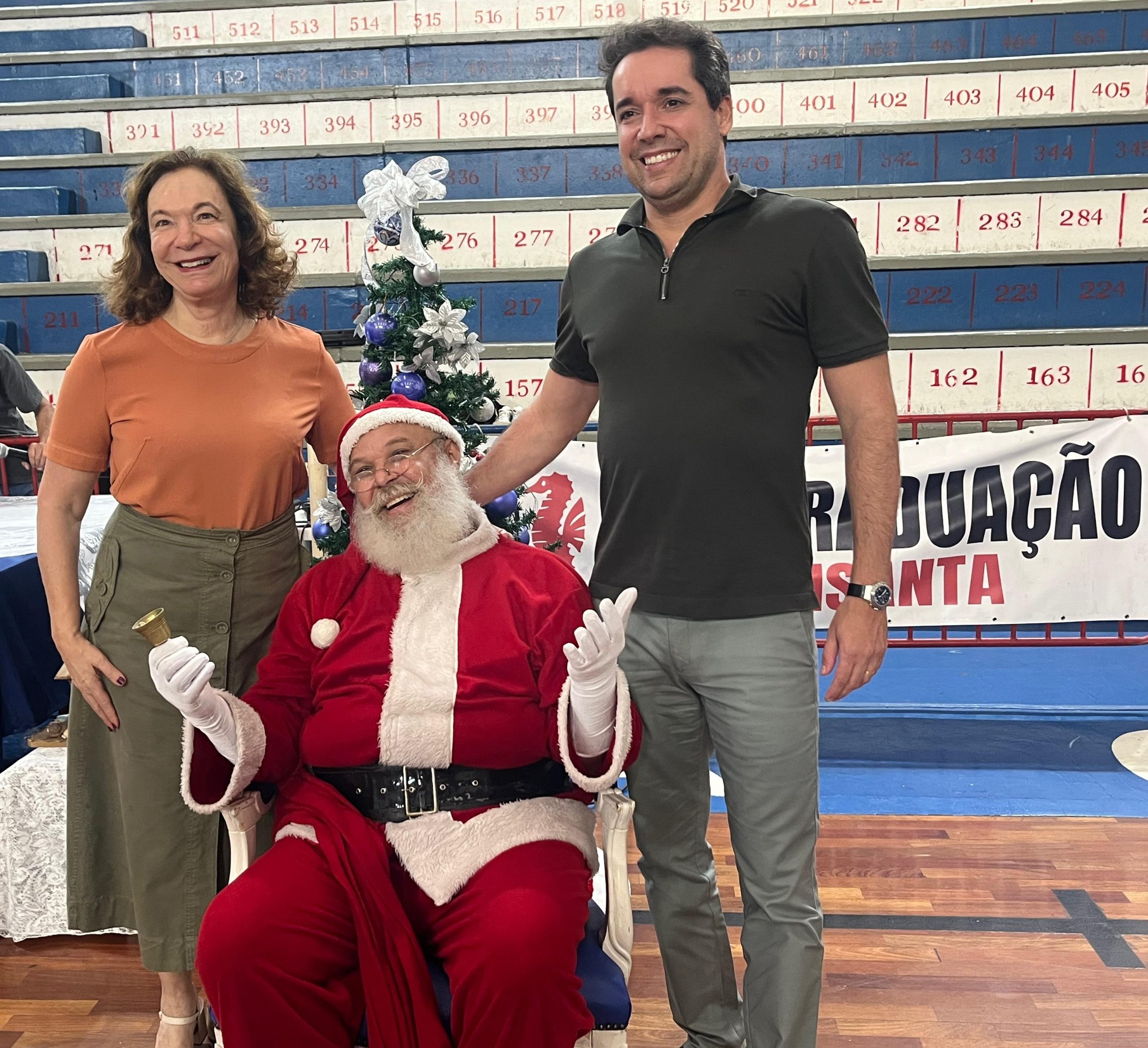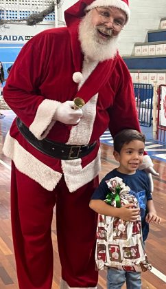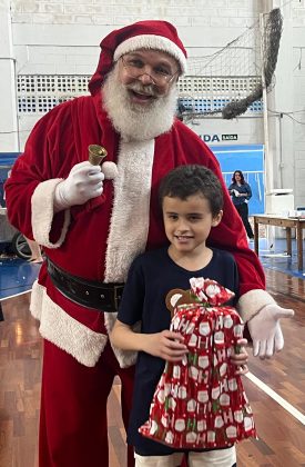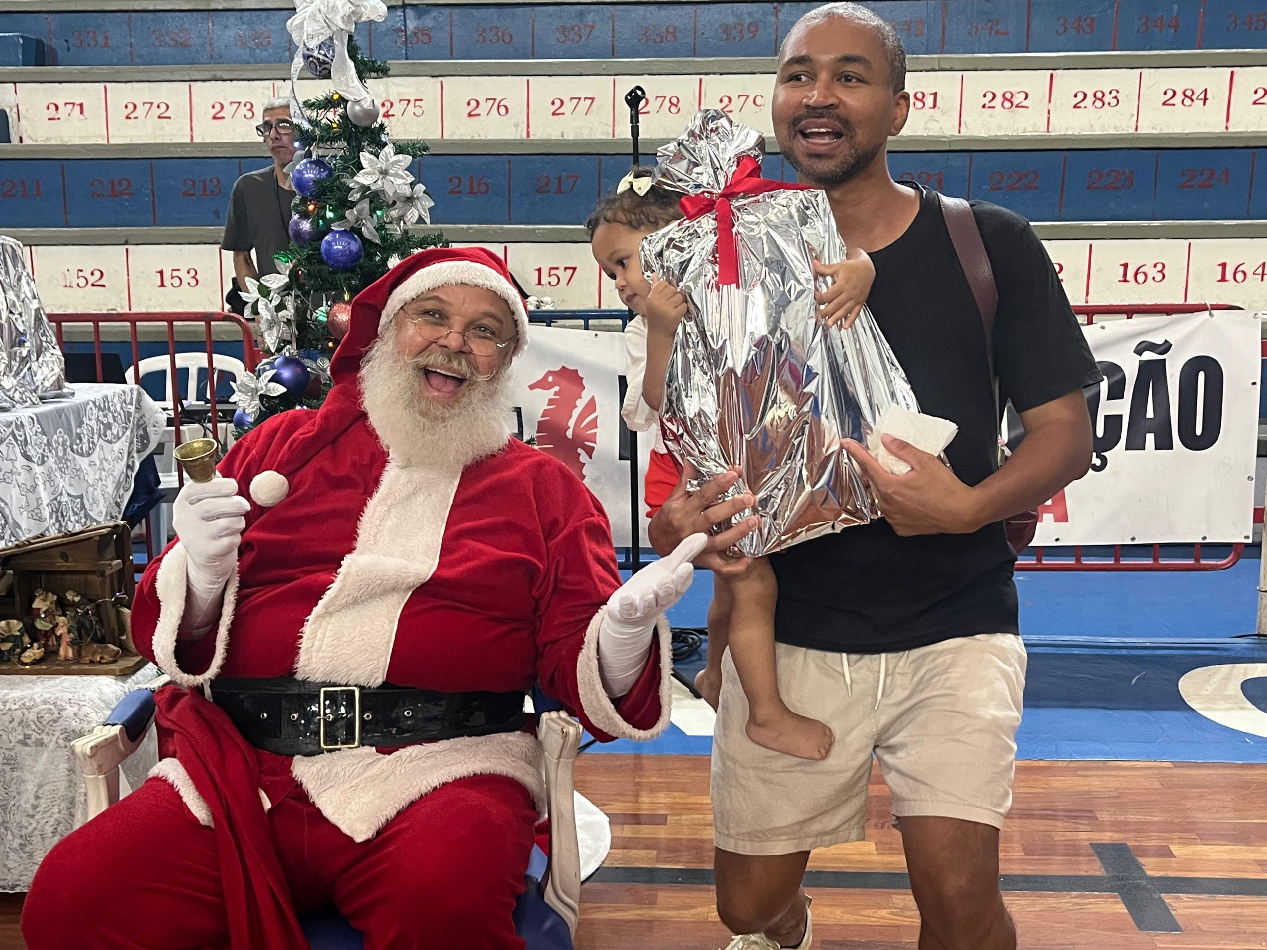 O evento, que aconteceu no Ginásio Poliesportivo da Universidade Santa Cecília (Unisanta) ofereceu às crianças tudo o que torna o Natal especial: presentes, brinquedos, barraquinhas recheadas de guloseimas e a presença aguardada do Papai Noel.