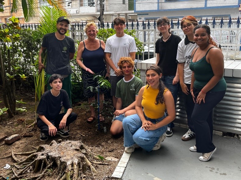 O Herbário da Universidade Santa Cecília (HUSC) realizou, no dia 25 de fevereiro, o plantio de uma muda de pau-brasil no jardim do Bloco M, em área verde próxima à capela da instituição. A ação foi conduzida pela professora Zélia Rodrigues, com a participação dos estagiários do Herbário, Pedro Bistene, Ian Costa e Beatriz Gonçalves, além do apoio de um profissional da empresa Eco Tree, uma empresa de poda e supressão de árvores, responsável pelo preparo do solo.