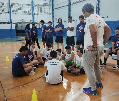 O dia 21 de março marca o Dia Internacional da Síndrome de Down. Em homenagem à data, o mestre Márcio Rodrigues dos Santos, professor da Faculdade de Educação Física da Unisanta (Fefesp), promoveu, nesta quarta-feira (18), uma aula reflexiva aos alunos do 5º semestre do curso sobre os benefícios da prática de exercícios físicos para pessoas com Síndrome de Down.
