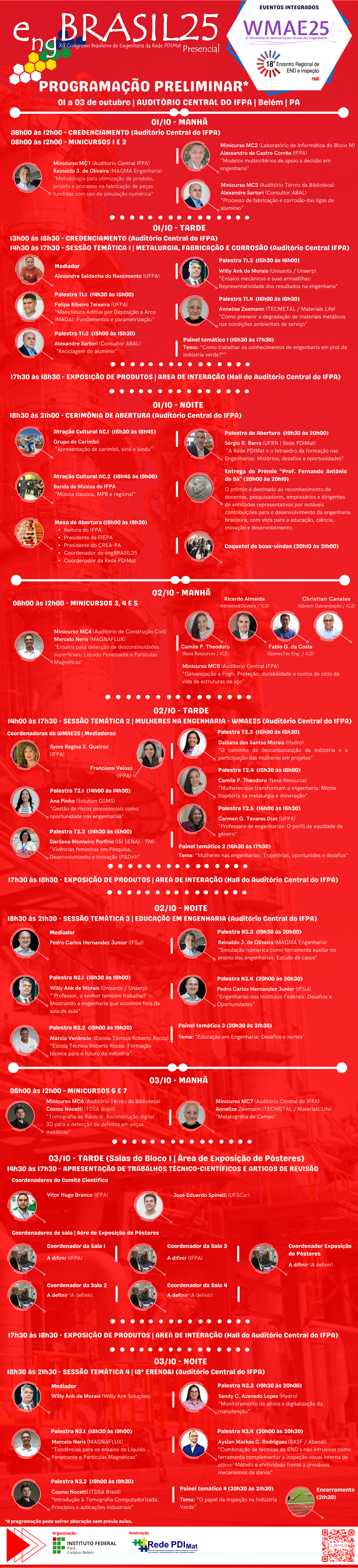 O coordenador dos cursos de pós-graduação lato sensu em Engenharia da Confiabilidade, Prof. Willy Ank, participará do engBRASIL25: XII Congresso Brasileiro de Engenharia da Rede PDIMat, principal evento brasileiro voltado à discussão das características e das aplicabilidades dos materiais metálicos em equipamentos industriais.