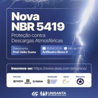 A atualização da norma brasileira NBR 5419, que trata da proteção contra descargas atmosféricas, será tema de palestra do curso de Engenharia Elétrica da Universidade Santa Cecília (Unisanta) marcada para o dia 16/4, no Anfiteatro do Bloco D, das 14h às 17h. O evento será ministrado pelo professor Hélio Sueta e é voltado a estudantes, engenheiros e profissionais da área.