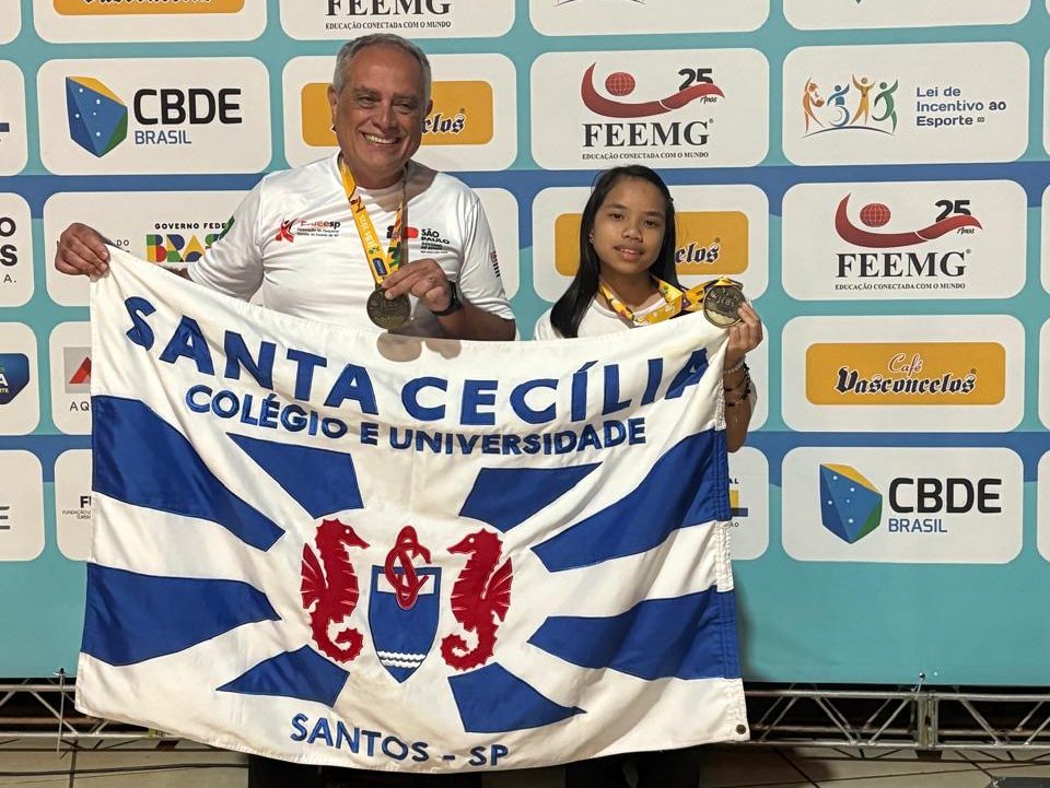 Entre os dias 6 e 10 de outubro, as alunas do Colégio e nadadoras da categoria Infantil da Unisanta, Manuella Steinberg e Isadora Miyashiro, conquistaram quatro medalhas na disputa dos Jogos. Manuella conquistou o ouro nos 50m peito e no revezamento 4x50m medley, prata nos 100m peito e bronze nos 200m medley, enquanto Isadora alcançou o ouro nos 400m livre.