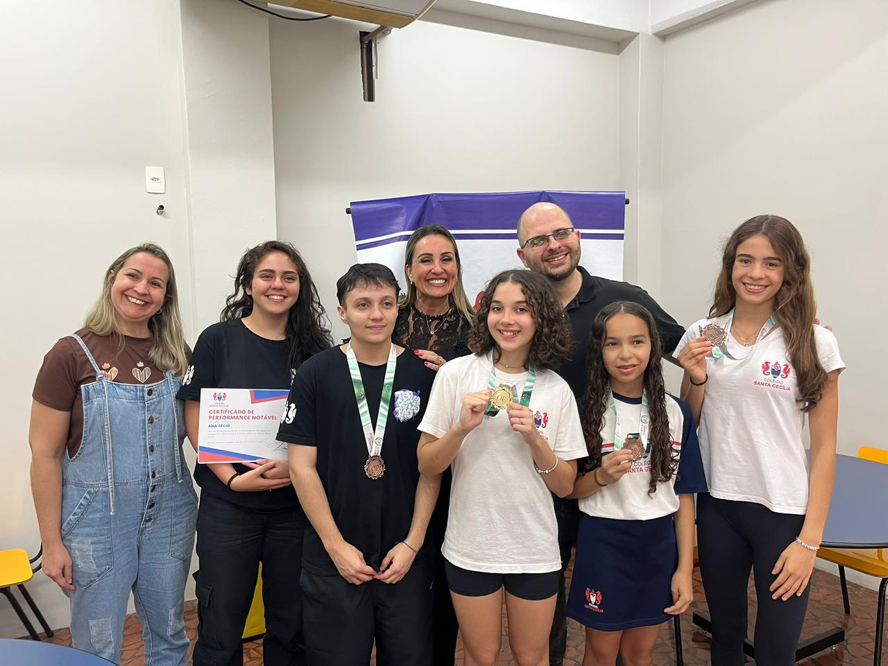 “Ter o destaque que nós tivemos, sem dúvida alguma, mostra muito da competência do trabalho realizado aqui no Colégio Santa Cecília. Nossos alunos receberam quatro medalhas e uma menção honrosa, realmente, foi um colégio que se destacou bem nessa Olimpíada”.