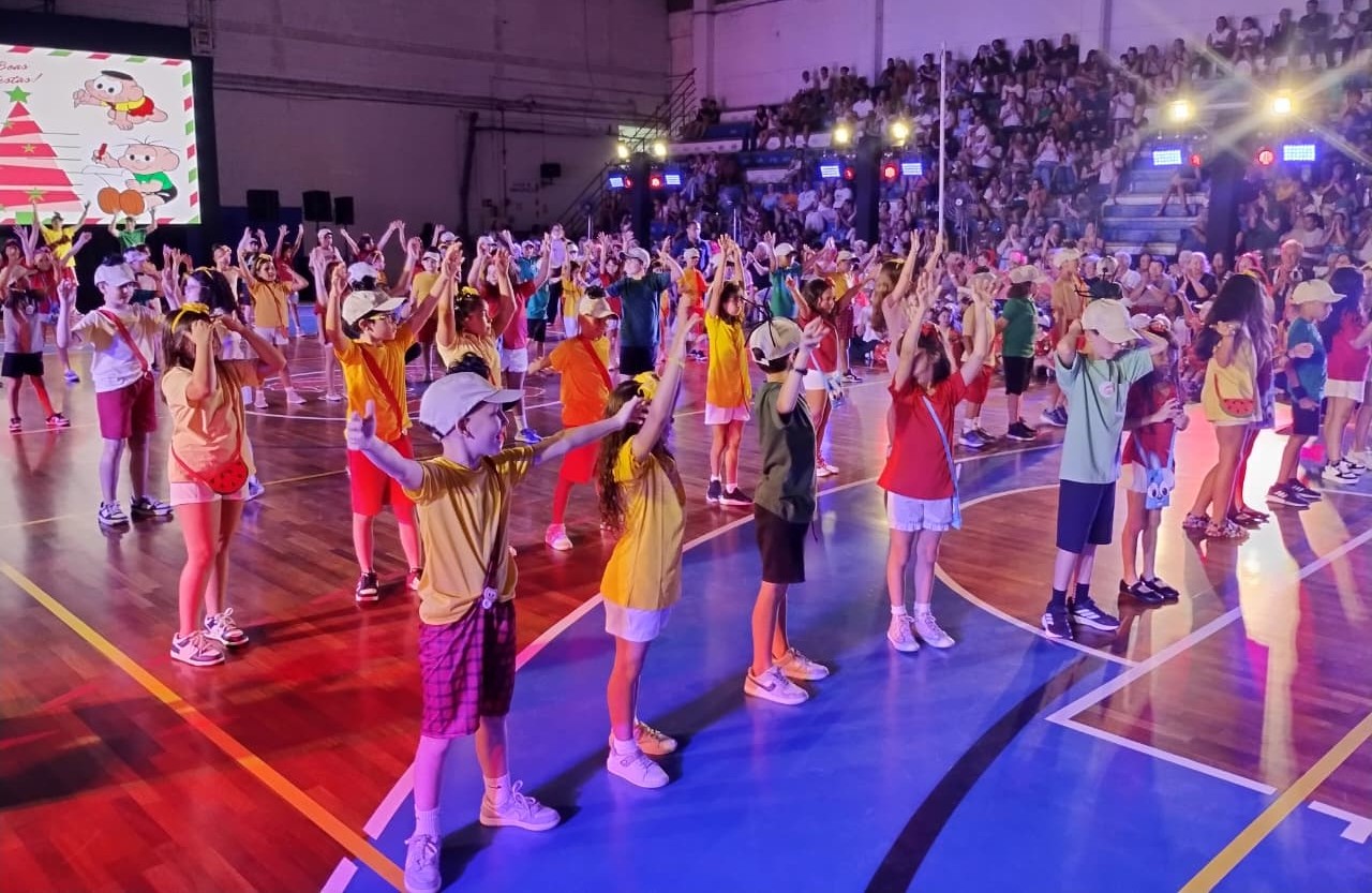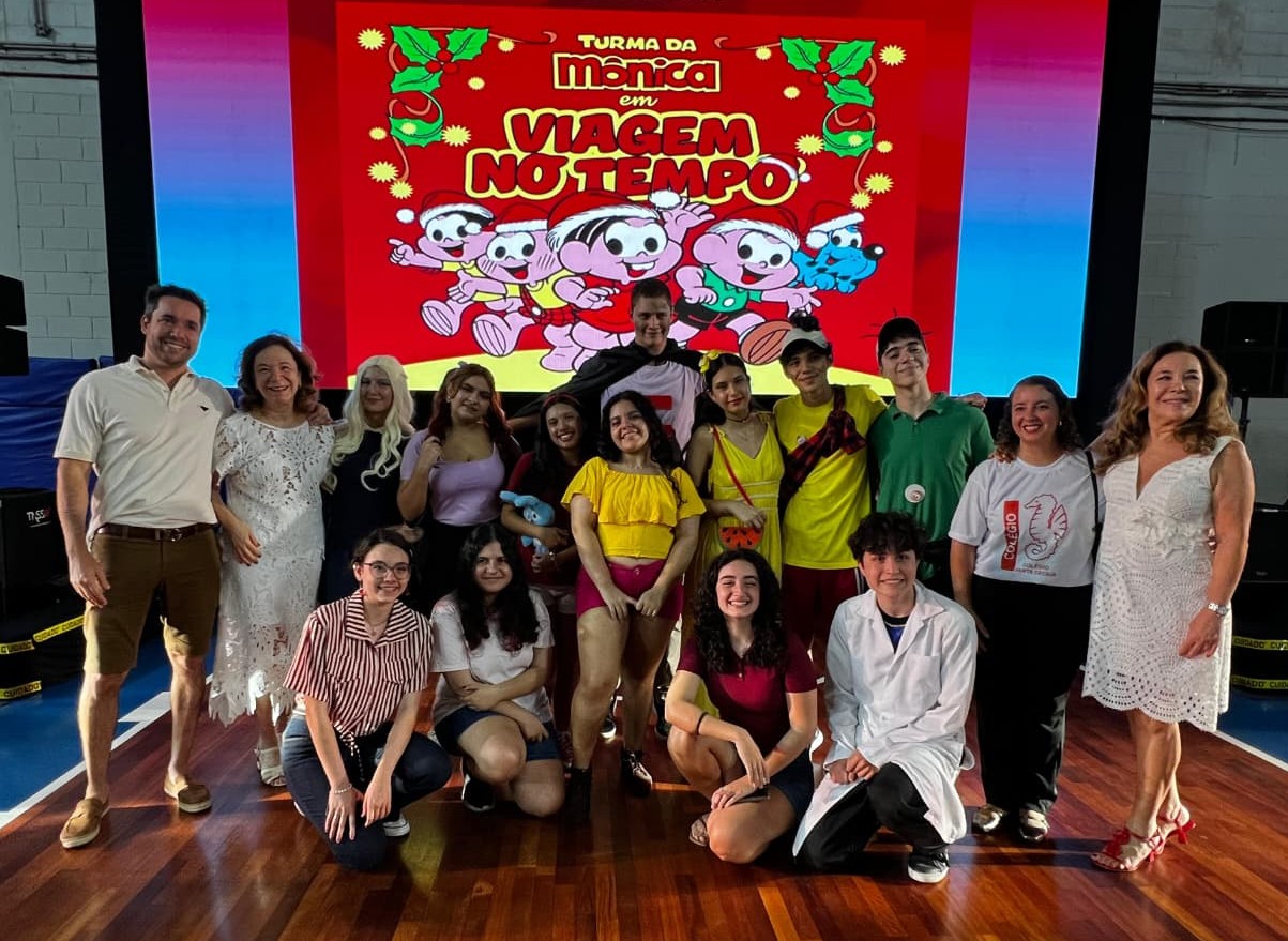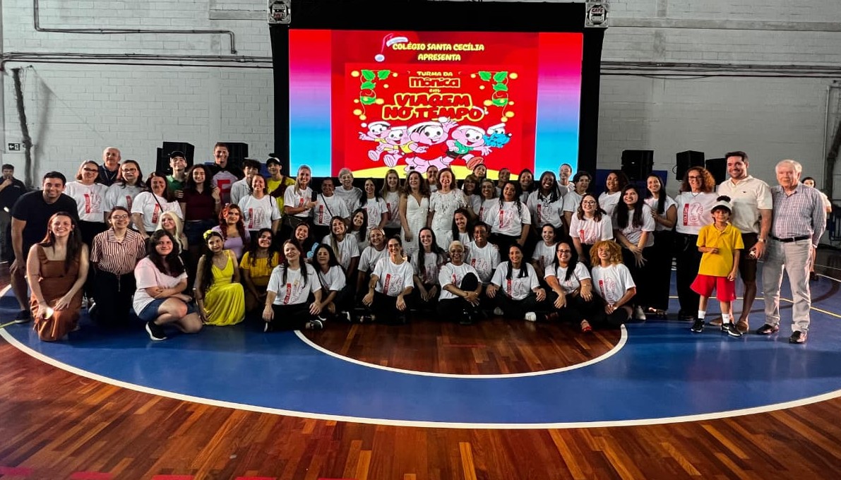 Os alunos do Colégio Santa Cecília se apresentaram no tradicional espetáculo de fim de ano, que em 2025 trouxe o tema “Turma da Mônica em: Viagem no Tempo” . A montagem, realizada no último sábado (29/11), reuniu estudantes da Educação Infantil ao 5º ano e o grupo de teatro do Ensino Médio, que deram vida às versões infantis e adolescentes dos personagens.