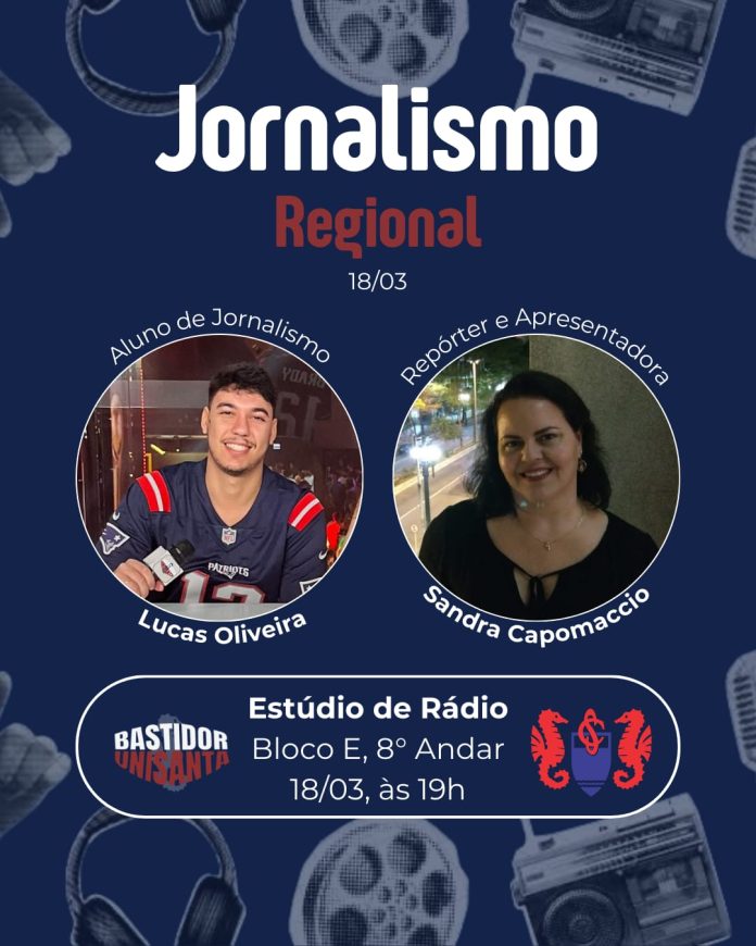 A entrevistada será a jornalista Sandra Capomaccio, que iniciou sua trajetória na Baixada Santista e se destacou quando foi para São Paulo trabalhar em grandes emissoras de rádio e outros veículos de comunicação.