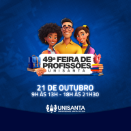 Já imaginou conhecer a rotina e conversar com profissionais de larga experiência no mercado de trabalho, visitar ambientes de prática profissional e ainda concorrer a bolsas de até 100% nos cursos da Unisanta? A Universidade Santa Cecília (Unisanta) proporcionará tudo isso a você e muito mais na 49.ª edição da Feira de Profissões, que está marcada para o dia 21 de outubro, nos períodos das 9h às 13h e das 18h às 21h30.