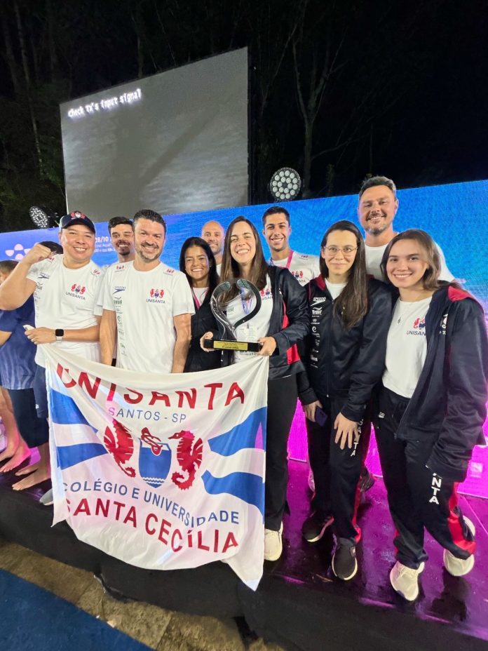 No total, foram 22 medalhas, sendo seis ouros, sete pratas e nove bronzes, reforçando o protagonismo da equipe entre os principais clubes do país da modalidade. Além das conquistas individuais e coletivas, a Unisanta também celebrou dois recordes de campeonato, quebrados por Gabi Roncatto (800m livre) e Mafe Costa (200m livre), nomes que brilharam ao longo do torneio.