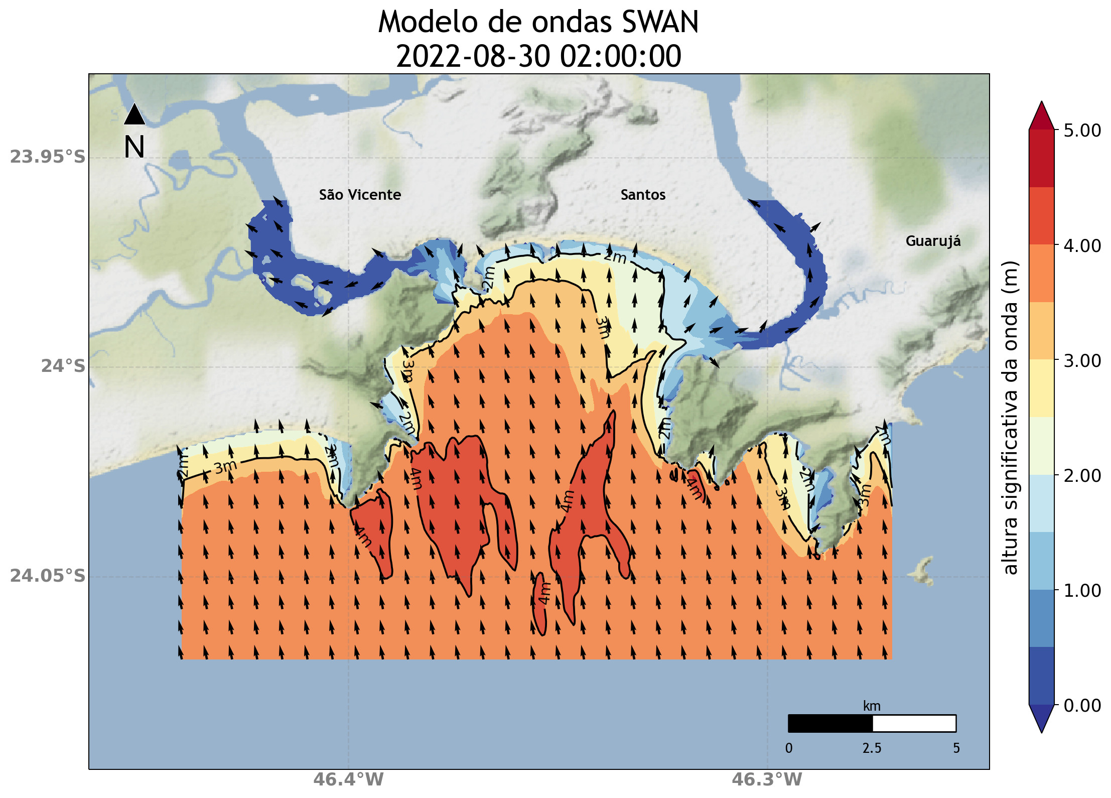 Cabe ressaltar que essas informações são baseadas em previsões de modelos numéricos, podendo sofrer alterações ao longo do tempo. Os pesquisadores do NPH-Unisanta recomendam o acompanhamento das previsões oceanográficas e meteorológicas e das condições do mar nos próximos dias.