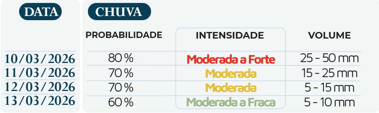 Cabe ressaltar que as informações deste boletim são baseadas em previsões de modelos numéricos, podendo sofrer alterações ao longo dos dias. Mais detalhes das previsões por município estão disponíveis em https://salasituacaohidrobs.com.br.