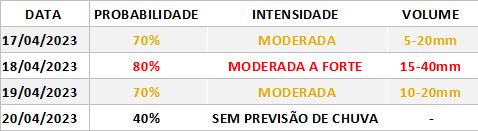 Tabela 2 – Previsão chuvas. Fonte: Defesa Civil de Santos