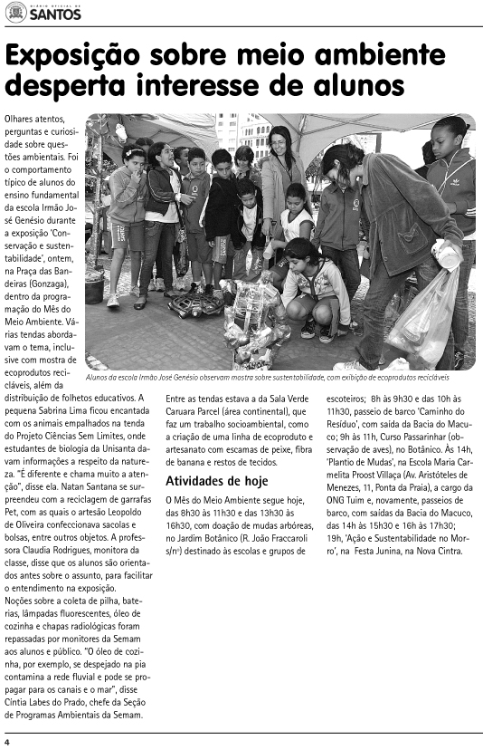 Home UNISANTA na mídia Projeto Ciências Sem Limites é citado no jornal Expresso Popular e no... UNISANTA na mídia Projeto Ciências Sem Limites é citado no jornal Expresso Popular e no Diário Oficial de Santos por Onã Tolentino - Colaborador - 31/05/2011 224 Compartilhar no Facebook Compartilhar no Twitter tweet Diário Oficial de Santos - 1/6/2011 Jornal Expresso Popular 31/05/2011 Confira a programação completa no link: http://migre.me/4GQUT